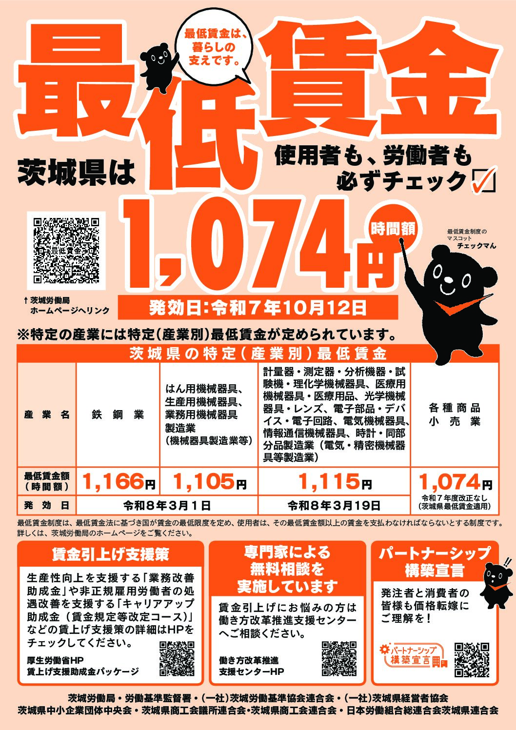 茨城県最低賃金 1,074円 令和7年10月12日